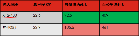 此外在爬坡情况下,配装福康X12动力欧曼自卸车在22km的爬坡道路上,福康X12动力油耗更优于其他品牌动力约14%。